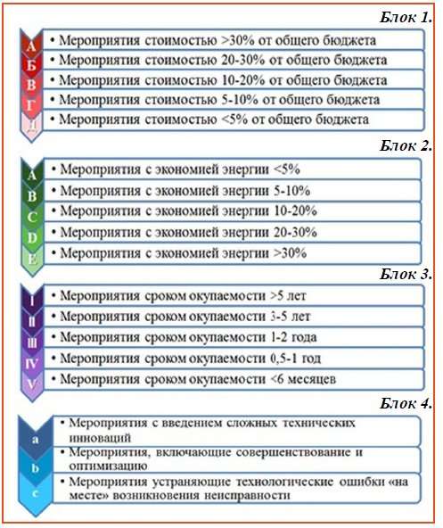 Сравнительная таблица вариантов энергосбережения: