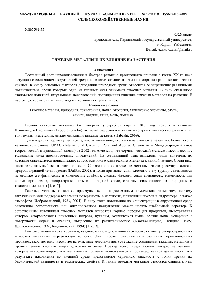 ПУТИ СНИЖЕНИЯ НЕГАТИВНОГО ВОЗДЕЙСТВИЯ ТЯЖЕЛЫХ МЕТАЛЛОВ НА РАСТЕНИЯ
